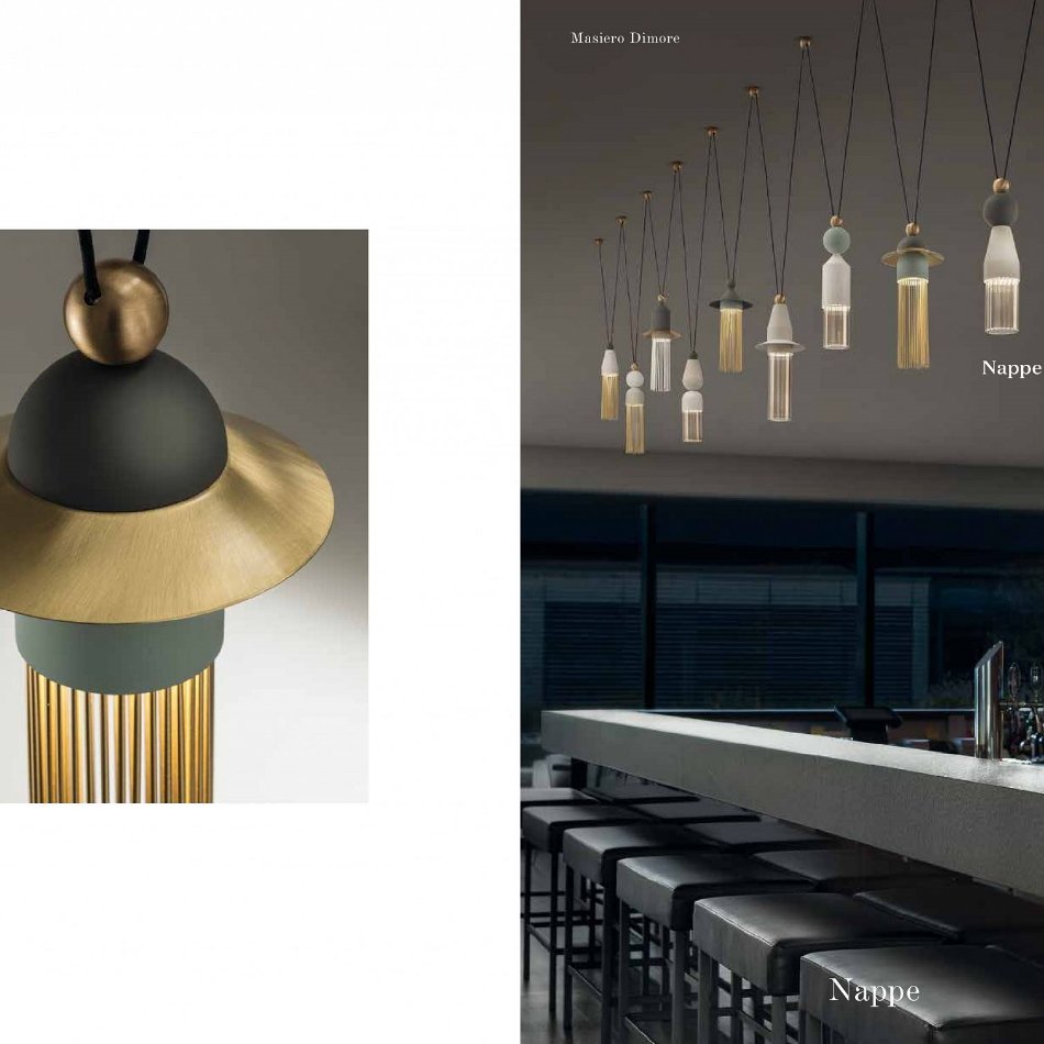 Подвесная система NAPPE коллекции Dimore от итальянской фабрики Masiero. Это не столько собственно светильники, сколько элементы, из которых можно собрать систему, имеющую практически бесконечное количество вариантов.