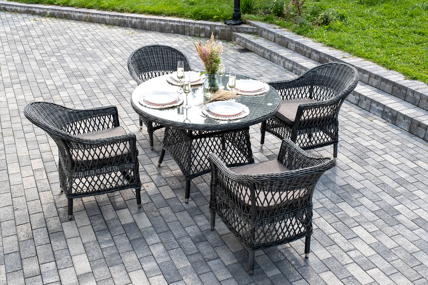 "Дольче" обеденная группа из искусственного ротанга, цвет графит