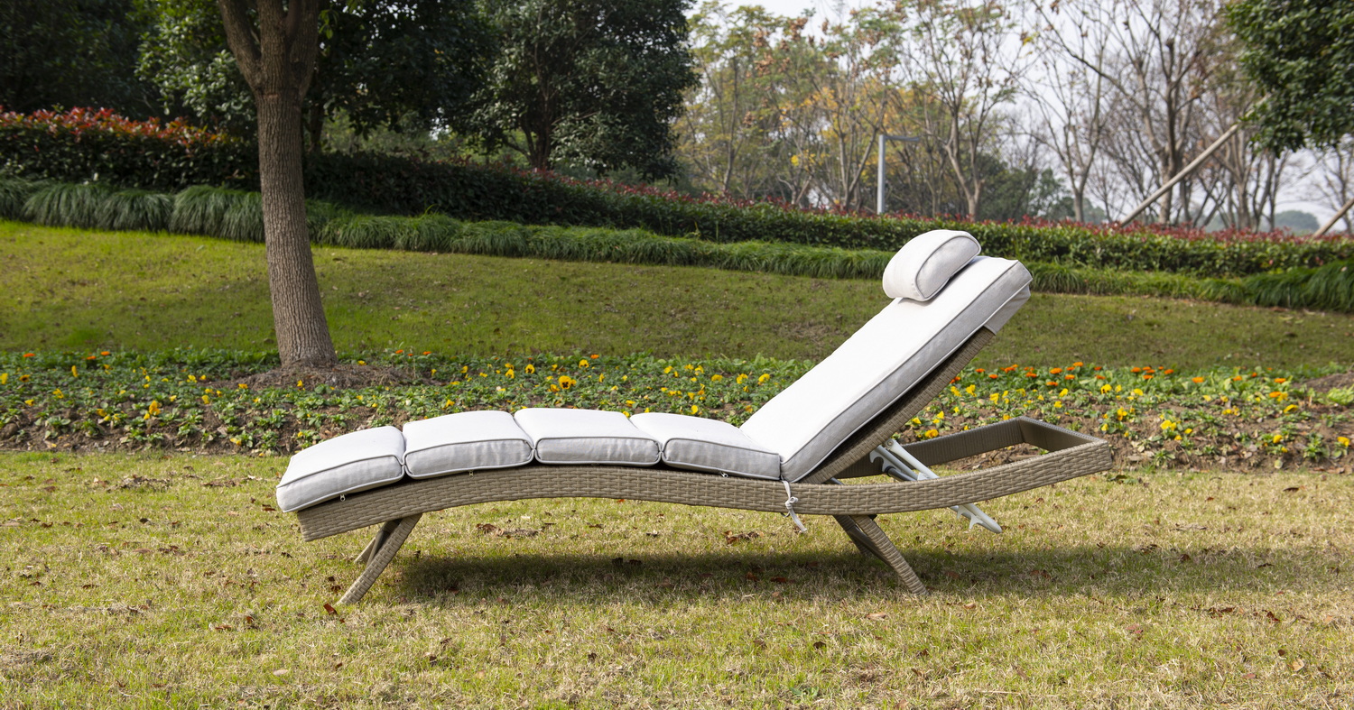 В комплекте прилагается матрас светло-серого цвета из водостойкой ткани.Мебель натуральных расцветок гармонично вписывается на пляже, в саду, на террасе.